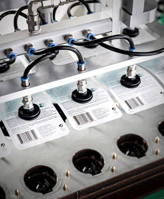 The standard 12 station machine has the capacity to upgrade to 4 additional auto feeding stations for; the back card of a trapped blister, multiple product loading, pre-made pill strips or sachets or card/paper printed inserts etc.